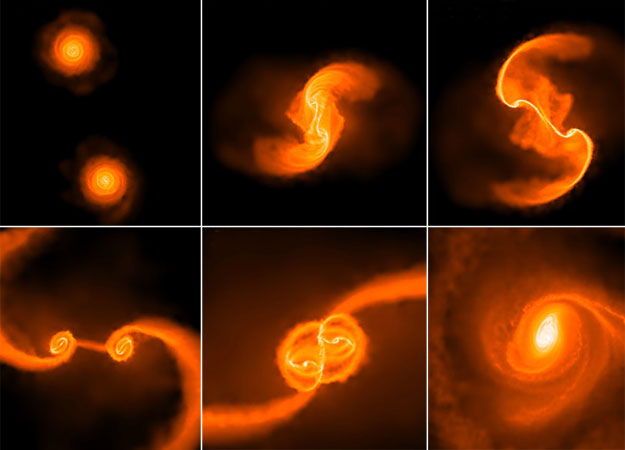 يقول رواد الفضاء في ناسا ان التلسكوب الفضائي هابل يقوم بمدهم بمعلومات تفصيلية عن التصادمات المتوقعة بين المجرات انهم يشبهونها بحادث تصادم عنيف بين سيارتين