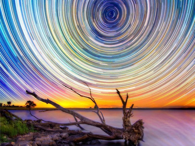 قد تظنها خدعة بواسطة الكومبيوتر أو عملاً فنياً لأحد الرسامين ، لكن تخيل أن ما تشاهده بالأعلى هو صورة تم التقاطها على مدار 15 ساعة لسماء استراليا !! .