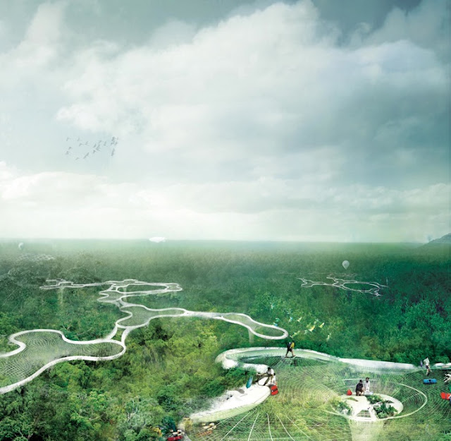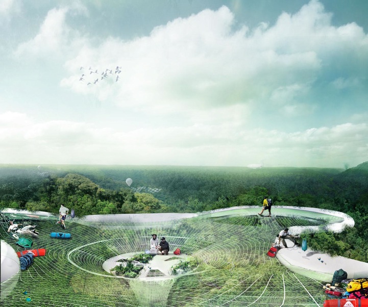 ولكن قام الطالبة يي ايفون وينج (Yi Yvonne Weng) في مدرسة الهندسة المعمارية بالتوصل الى طريقة تسمح بالاستفادة من الغابات المطيرة دون هدمها أو إيذائها عن طريق مظلات خفيفة تسمح للبشر باستكشاف والبحث وحصد النباتات الطبية من الغابات دون تخريبها