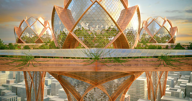 الجدير بالذكر أن ذلك المشروع الجديد تأخذ المباني فيه  شكل زهرة لوتس ، وذلك  لما هو معروف عنها إنها لها  قدرة خاصة على النمو فوق المياه العكرة ، و تحولها إلى نقية و اعظائها منظر خلاب وهذا هو المقصود تماماً من ذلك المشروع وهو القضاء على مؤرقات الحياة في مكان رائع و أكثر راحة الا وهو السماء .