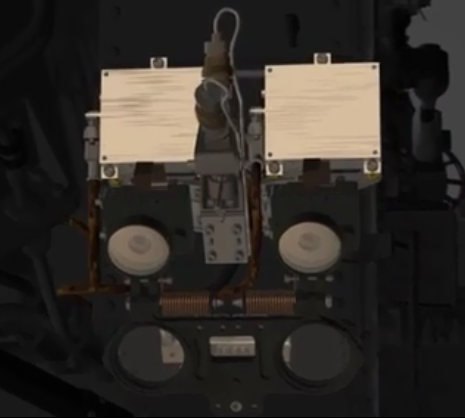 الكريوسيتي يحتوي على 12 كاميرا هندسية (8 هازكام (Hazcam) في المقدمة وفي المؤخرة و4 كامريات ملاحية نافكام (Navcam) على قمته) وكلها تلتقط صور ابيض واسود فهي تعمل كما لو كانت اعين له وتعطي لنا معلومات ثلاثية الابعاد حول المكان الموجود فيه وكل كاميرا لها الاحتياطي الذي يقوم بعملها ويخزن معلوماتها بحيث يكون مستعد لحدوث اي طارئ