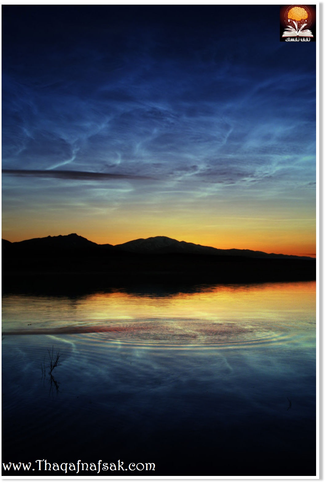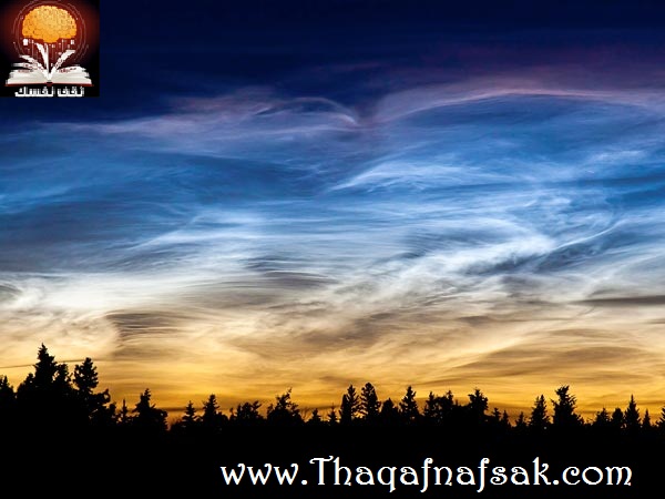 هذه الغيوم الليلية المضيئة يكون لونها أزرق وذلك نتيجة للبلورات الصغيرة من بخار الماء التي تقوم بتشتيت وعكس الضوء قبل أن يصل إلى أعيننا