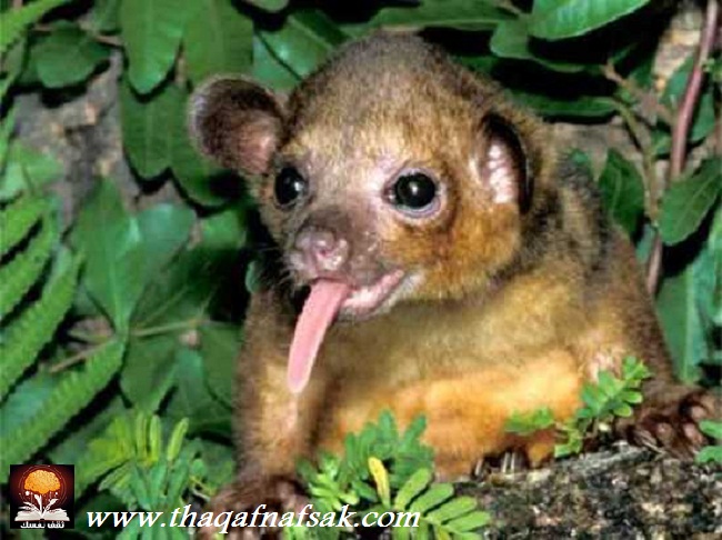 مخلوق له فرو ذهبي اللون وذيل يُمكِّنه من الإمساك بأفرع الأشجار . يُطلق عليه أيضاََ “دب العسل” . يعيش فيالأشجارويتغذى بشكل رئيسي على الفواكه . يستخدم لسانه البالغ 13 سم ليمسك بالفواكهالمُعلَّقة وليلعقَ رحيق الأزهار .