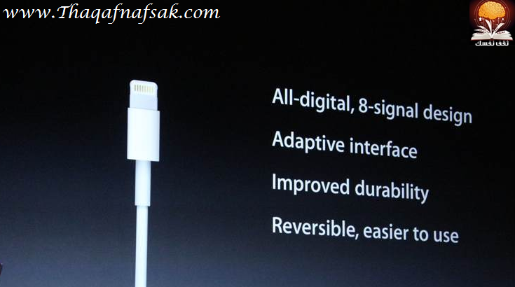 كابل التوصي الجديد للأي فون 5 أصغر بنسبة 80% وتمت تسميته البرق ويتميز بأنه أقوى على التحمل ويمكنه أيضًا كالعادة توصيله بالأجهزة الأخرى ولكن إذا كنت تريد أن تقوم بتوصيله بأكثر من جهاز آخر سوف تقوم بفتح محفظتك وتدفع 30$ لشراء وسيط يقوم بما تريد ويتوفر الهاتف الجديد بلونين الأبيض والأسود