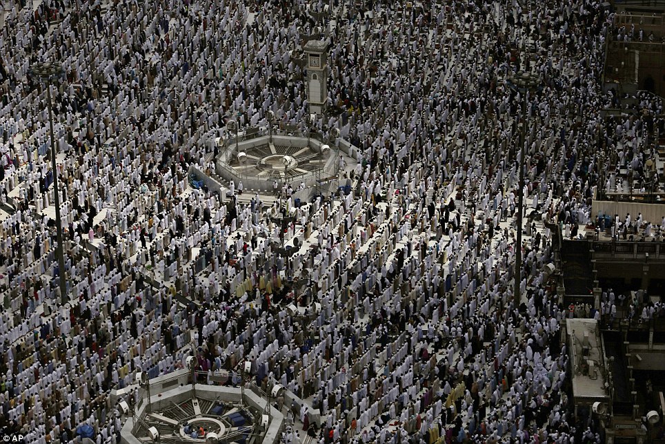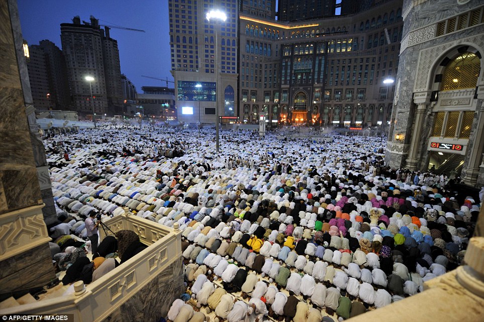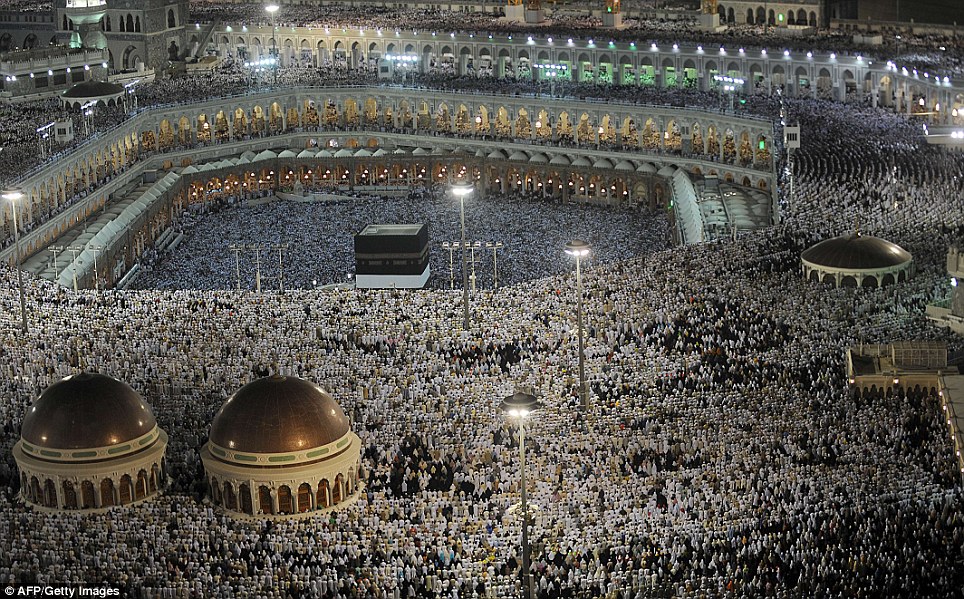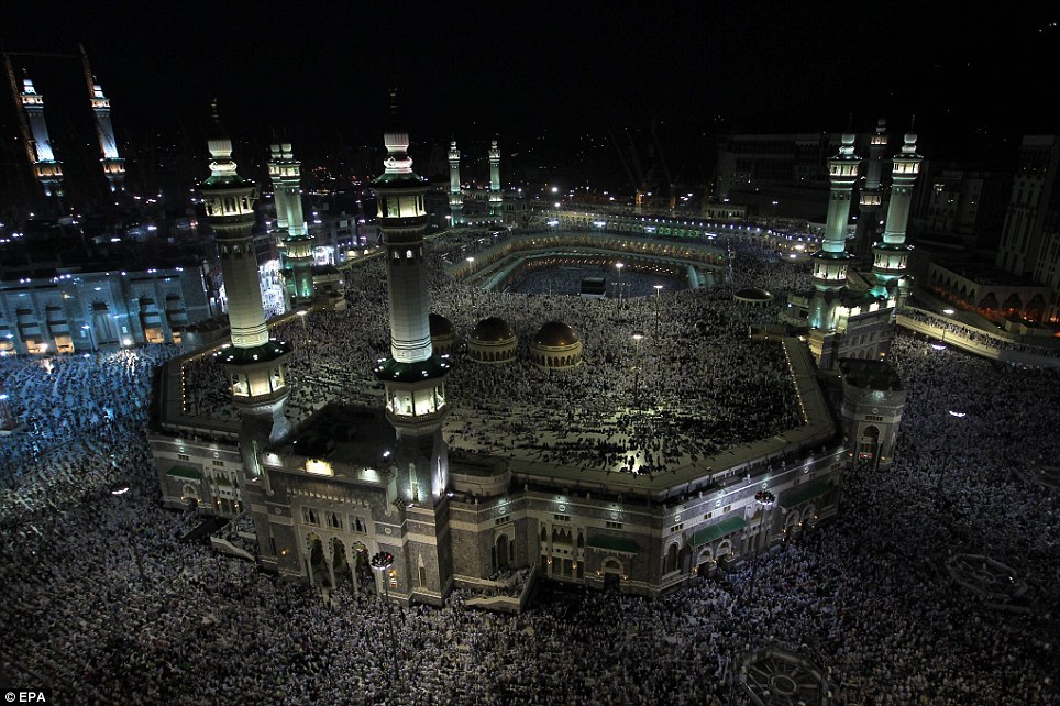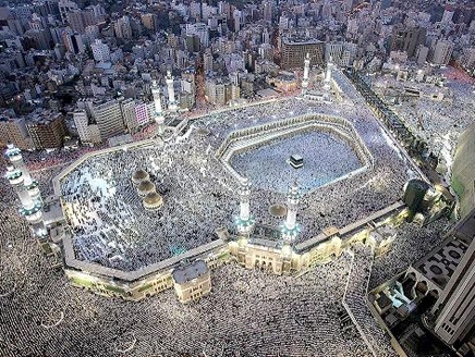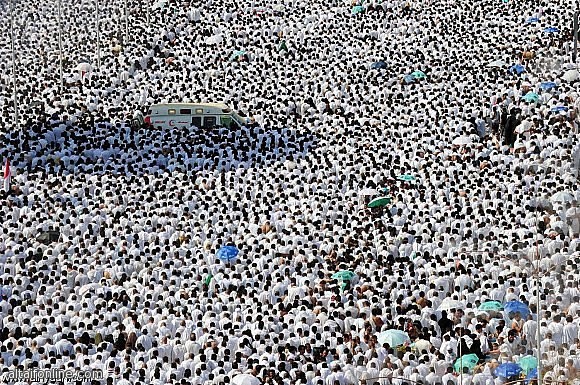هذه الصورة تلتقط ملايين الحجاج في مكة يصلون وهم على إستعداد لبدء مناسك الحج ، المسجد الحرام هو المركز الذي يبدأ منه جميع المسلمين مناسك الحج والتوجهه منه إلى مزدلفة كلهم باللباس الأبيض لافرق بين أبيض ولا أسود ولاغني ولافقير. في هذا المكان يتحد المسلمين ويصبحون يدا واحدة بإختلاف اللغات فإنها تجمعهم كلمة واحدة وهي التوحيد .
