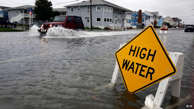 صورة أثناء غرق الطرق على الساحل الشرقي الأمريكي. و الجدير بالذكر إن ساندي ضربت إلى ما يقرب من 12 ولاية أمريكية .