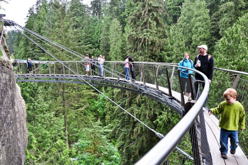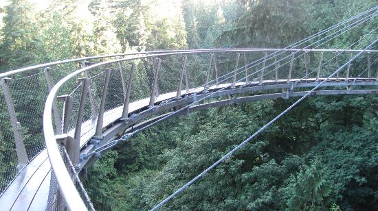الجسر المعلق يمتد عبر 450 قدم و 230 قدم فوق نهر كابيلانو في فانكوفر الشمالية . ولكن لا تقلق، على الرغم من أنه يترنح ويصدرصرير، إلا انه قوي جدا جدا. قوي بما يكفي لدعم وزن عشرة من الطائرات المقاتلة العسكرية . قوي بما يكفي للتعامل مع الزوار حوالي  850000 كل عام. قوي بما يكفي للتعامل حتى لفصل دراسي كامل من طلاب الروضة يمشون جميعا عبر الجسر، سوف يعبرون نهر كابيلانو ويدخلون إلى الجانب الأخر الذي يتمز بغابة كاملة حية .