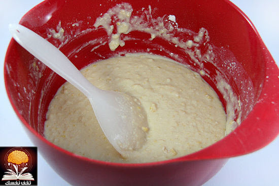 3) قم بإضافة الطحين المتبقي واستمر في تحريك الخليط لمدة دقيقتين إلى أن يصبح المزيج متجانس .