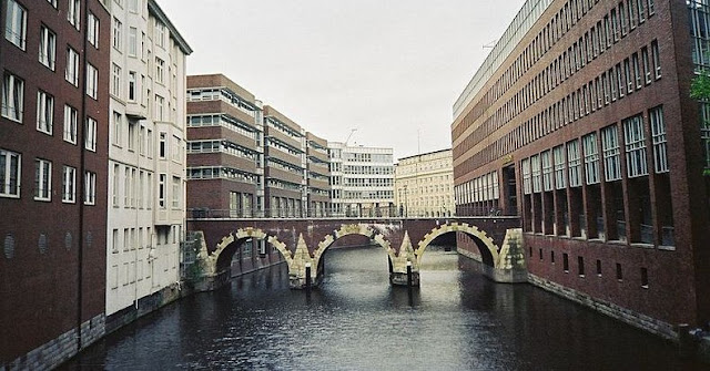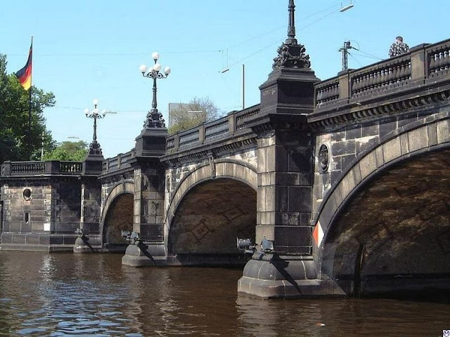 جسر لومبارد مكون من الطرق والجسور الحديدية على مد نهر ألستر في هامبورغ . تم استبدال الجسر الخشبي الأصلي في عام 1865م .