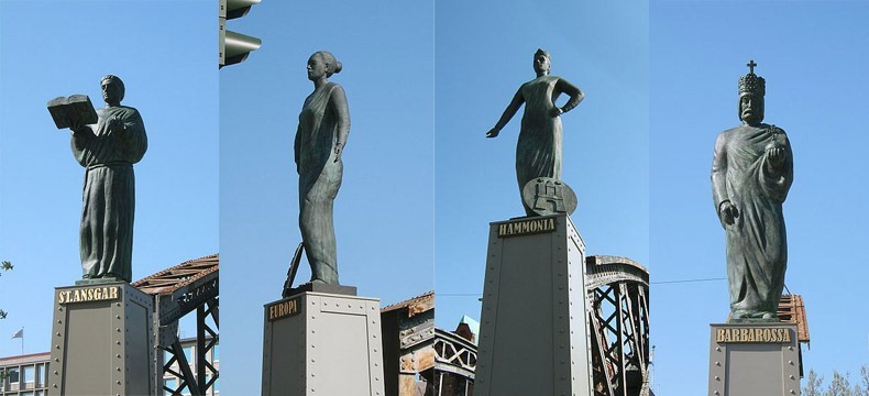 تم افتتاح جسر بروكس المؤدي إلى Speicherstadt في عام 1887م . ويزين الجسر بأربعة تماثيل واحد في كل من أركانها. تم تدمير التماثيل الأصلية في الحرب العالمية الثانية. اقيمت التماثيل الحالية في عام 2001م .