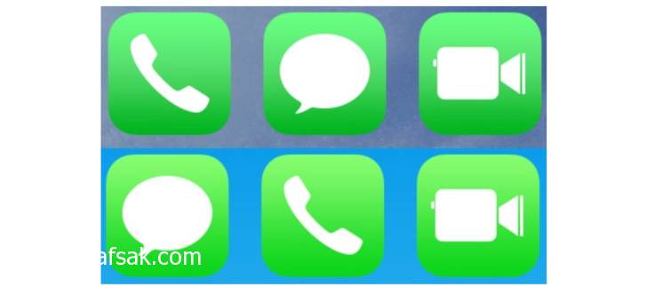 وقد تم تغيير المستطيل الأخضر المستخدم في الرد على المكالمات إلى دائرتين حمراء وخضراء