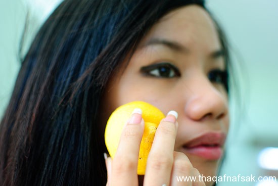 10- قطع الليمون إلى نصفين وافرك به بلطف وجهك وارقبتك ثم أغسلها بعد 10-20 دقيقة، إذا فعلت هذا بإنتظام سوف ترى نتائج باهرة على بشرتك :