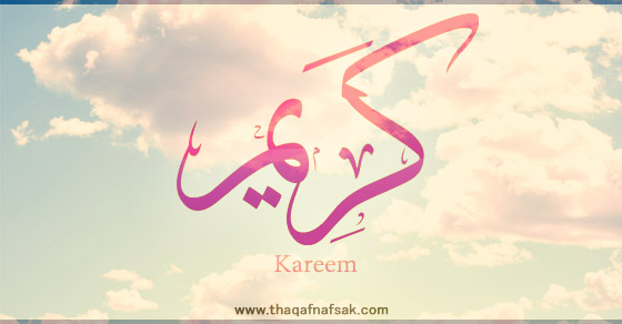 معناه : السخيّ ، المعطاء ، محبّ الخير ، الأصيل ، النجيب ، وإذا عرف الاسم صار من صفات الله الحسنى . قال تعالى : ﴿ لا إِلَهَ إِلَّا هُوَ رَبُّ الْعَرْشِ الْكَرِيمِ ﴾