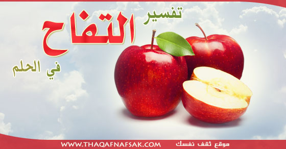 و يذكر النابلسي أنه من رأي تفاح أخضر فإنه يدل علي ولد و الأحمر يدل علي النفوذ و الأبيض يدل علي تحقيق منفعة من جهة التجارة . و من رأي أنه قام بتقطيع التفاح نصفين فهذا يدل علي حدوث إنقسام بين صدقين . و من رأي أنه يقطف تفاح من فوق شجرة و أكلها فإنه يرزق في حياته .