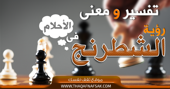 في البداية يجب أن تعرف أن يدل الشطرنج علي أنك تعيش حياتك و كأنك في ساحة معركة . و قد يدل علي أنك ستشهد تطورات في حياتك مثل الإنتقالات التي تحدث في لعبة الشطرنج . و أن بعض الأمور في حياتك تحتاج منك إسترتيجيات الدفاع و الهجوم . و اللعبة عموماً ممتعة و فيها المزيد من الإثار و التشويق .