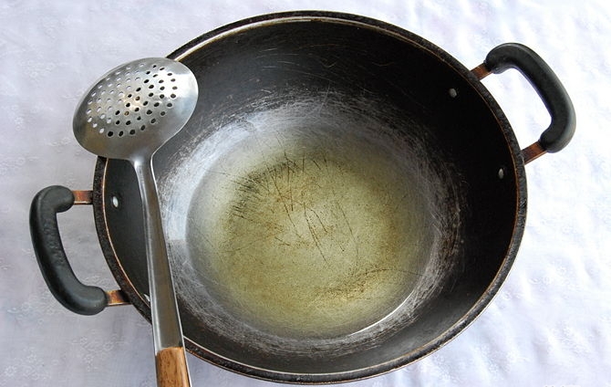 4- قومي بصب بعض الزيت داخل مقلاة وضعيها على النار متوسطة الحرارة