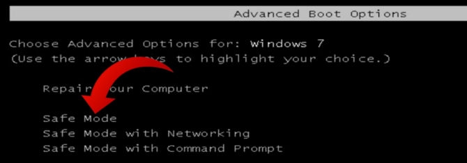 3-     قم بفتح الويندوز على الوضع الآمن safe mode وإذا لم تجده فاستمر في الضغط على مفتاح F8 أثناء فتح الكمبيوتر ثم اختار الوضع الآمن