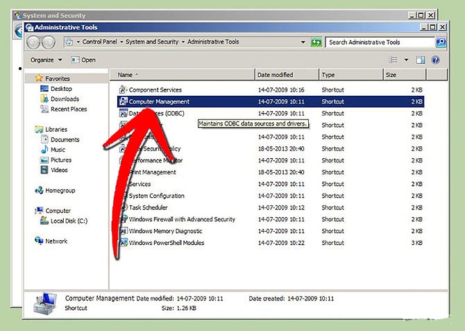 1. الذهاب إلى computer management