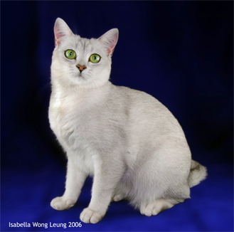 وله حجم متوسط ورشيق وعيناه لوزية الشكر وذات لون أصفر أو أخضر وذيله طويل والمعطف كثيف ولامع وله ألوان مختلفة فقد يكون فضي وبه علامات فحمية أو برونزي أو دخاني وعليه علامات سوداء، وهذا القط ذكي جدا وهادئ الطباع ويتعلم بسرعة.