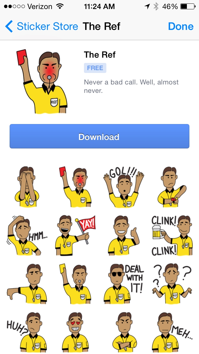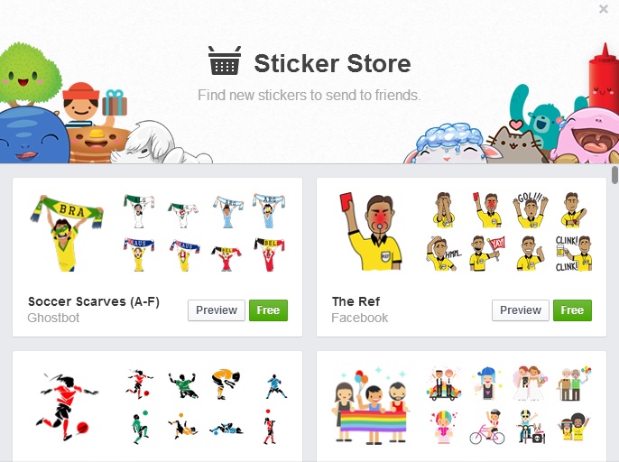 طرح الفيس بوك من قبل مجموعة من الملصقات الظريفة لكي تكون بدلًا من الحركات الصغيرة لكي تستخدم أثناء المحادثات كنوع من المرح وبما أن الكثيرين الآن يتابعون كأس العالم لكرة القدم وهو الحدث الأكثر ضجة على الساحة العالمية الآن ومحور الحديث على محادثات الفيس بوك فكان لابد من أن يطرح