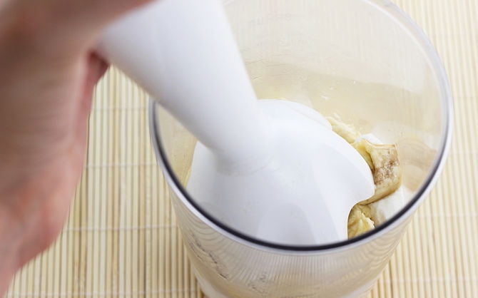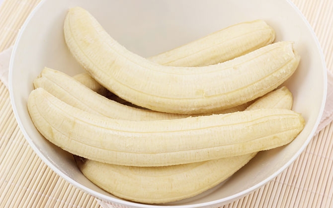 1- قم بتقشير ثمرات الموز كلها ثم قم بوضعها داخل الفريزر لمدة ساعتين حتى تتجمد تماما.