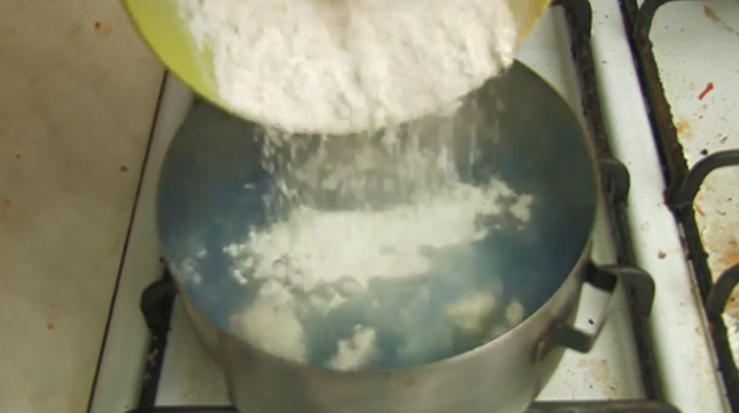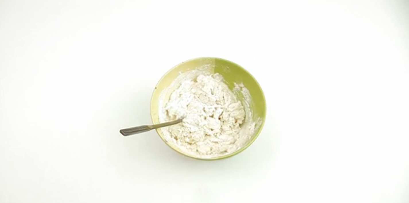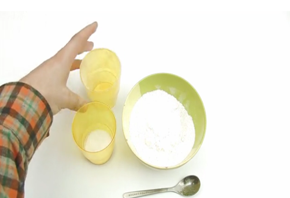 1- خلط المكونات الجافة: في وعاء متوسط الحجم قم بخلط الدقيق والملح، ثم قم بوضع ملعقة من الشبة التي تعمل كمادة حفظ لتبطئ نمو البكتيريا، مع ملعقة أضافة لعقتين من كريم التارتارلزيادة المرونة.