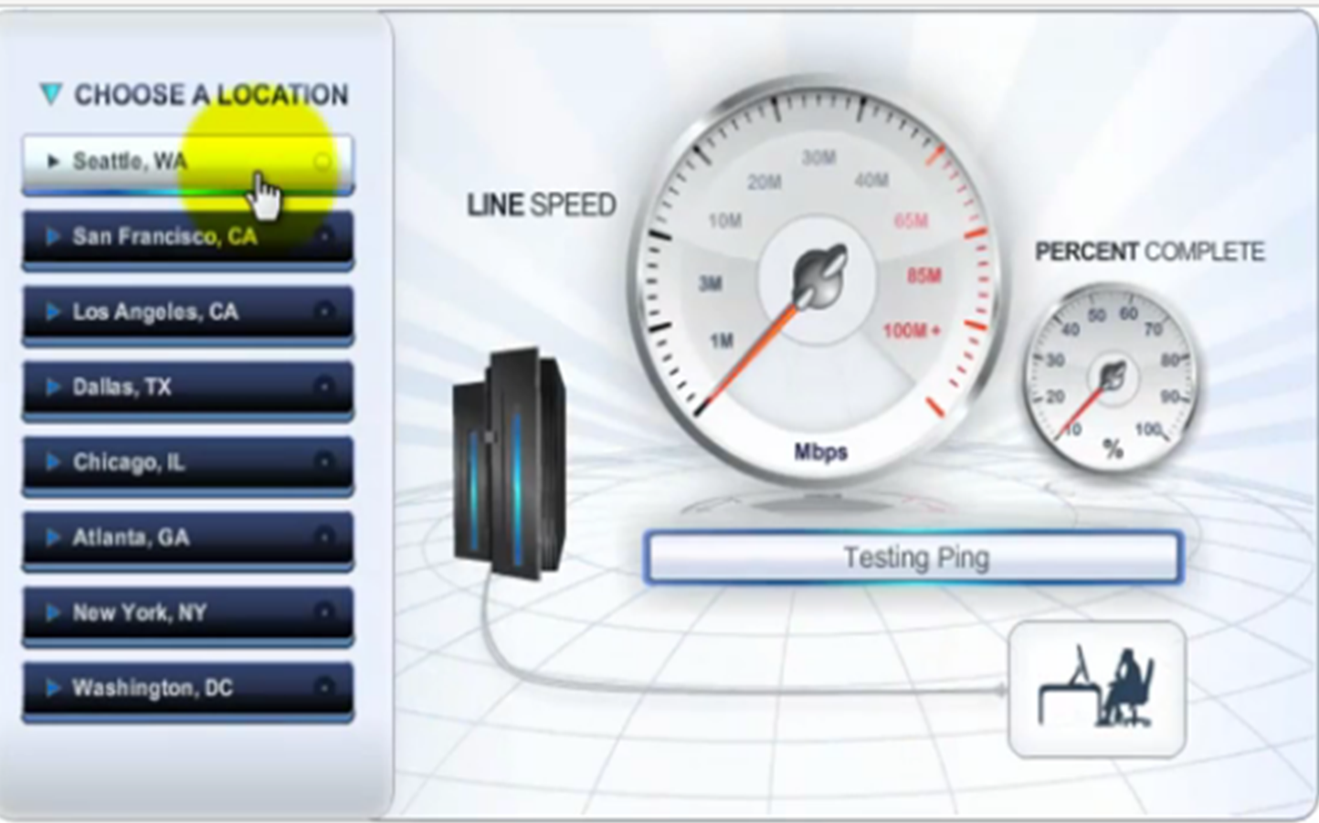 2- قم باختيار الخادم الأقرب لك، حيث أن برامج اختبار السرعة تعرض لك مجموعة خوادم اختار اقربها لك، الخادم الأقرب لك سوف يعطيك أفضل النتائج والحد الأقصى لمعدل النقل، كما أنه يوضح كم من الوقت يجب أن تأخذ كي تحمل الملفات من مكان لآخر.