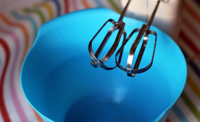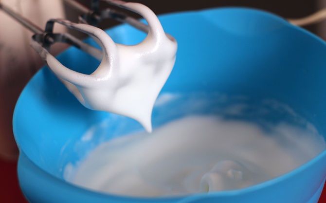 و حتي يصبح خليط بياض البيض متماسك قم بفصل الخلاط .