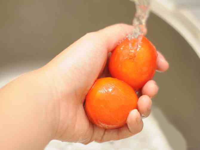 الخطوة 1 : الحرص على اختيار الطماطم الطازجة وغسلها جيدا .