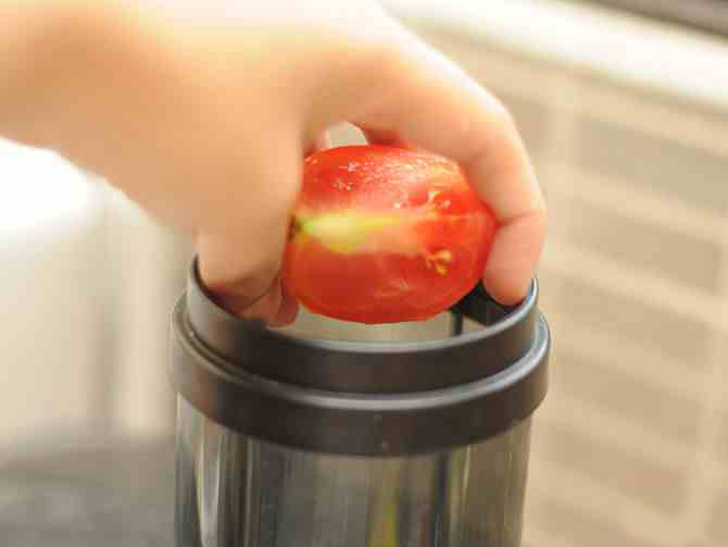طريقة 3 من 3: صنع عصير الطماطم باستخدام عصارة