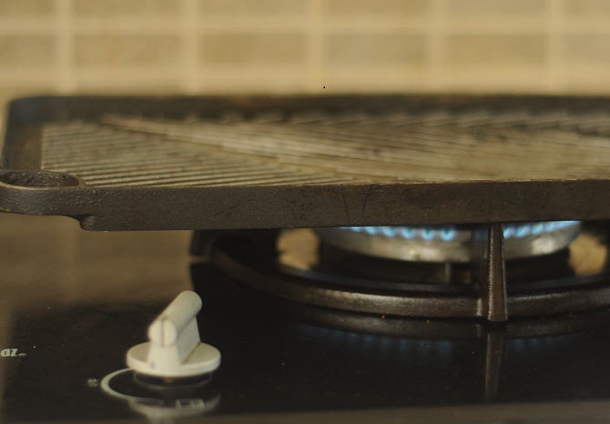 5. تسخين الشواء علي درجة حرارة متوسطة و عالية و الإنتظار حتي تصبح قضبان الشواء ساخنة قبل وضع السمك. و من الأفضل وضع السمك علي درجة حرارة متوسطة حتي لا يحترق جلد السمك قبل طهي السمك جيداً و يجب الحرص علي عدم وضع ذيل السمك بالقرب من النار حتي لا يحترق قبل طهي السمك تماماً .