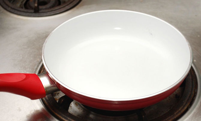 تسخين مقلاة متوسطة الحجم و مستديرة ، في درجة حرارة منخفضة .