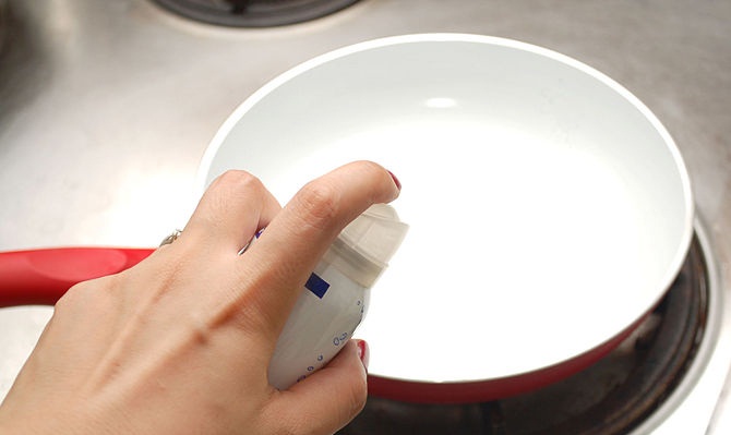 رش رذاذ الطهي علي المقلاة لمنع الإلتصاق، ثم إضافة لمسة خفيفة من الزبدة و توزيعهاا في المقلاة جيداً .