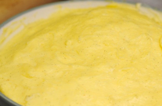 و ذلك حتي يكون لديكي وقت لتركها تبرد حتي تنتهي من الخطوات الأخري لذلك قومي بخلط مكونات الكريمة المذكورة أعلاه معاً و إخفقي جيداً حتي تحصلي علي خليط سلس .