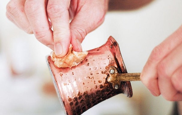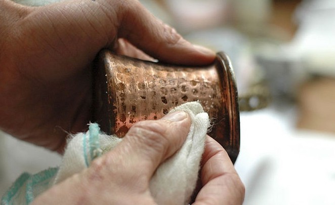 - تدليك النحاس بالخليط لإزالة أي أوساخ .