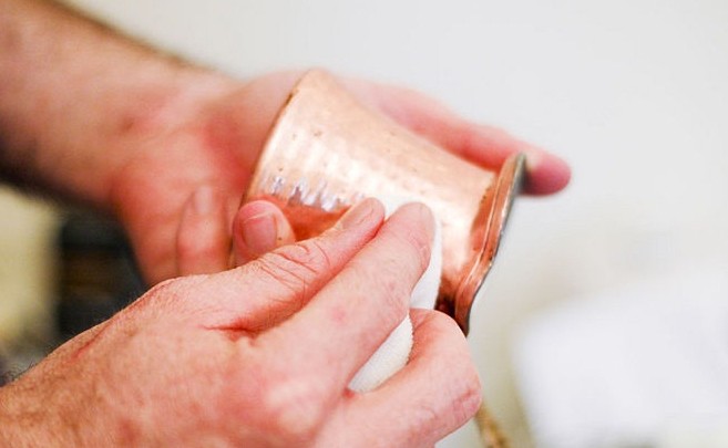 - غسل النحاس بالماء الدافئ .