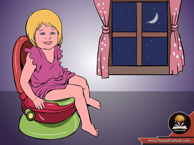 2. التدريب علي إستعمال النونية ليلاً : بمجرد الإنتهاء من تدريب إبنتك من إستخدام القصرية بمفردها خلال أوقات النهار ، و فحص الحفاضات في الصباح لملاحظة إذا قامت بحمام ليلاً أو إذا كانت الحفاضات جافة و من أفضل الطرق علي تدريبها ليلاً هي إرتداء الملابس الداخلية العادية لكي تكون مستعدة لإستخدام النونية ليلاً .