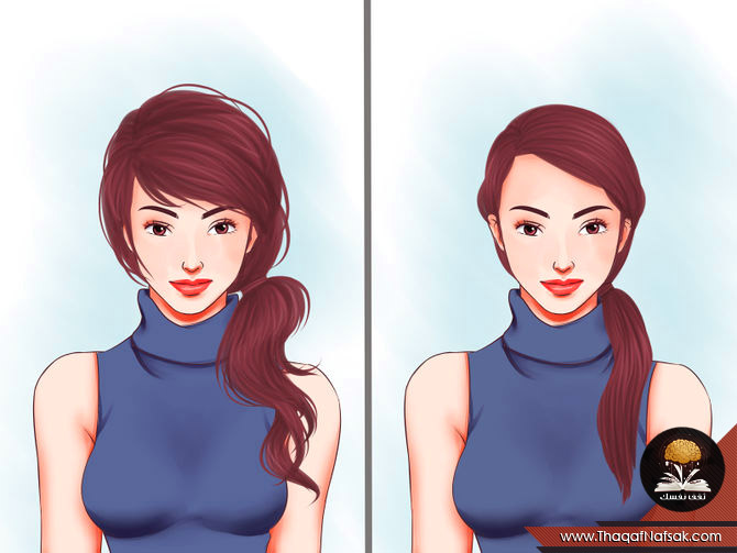 المشي بأصابعك في داخل شعرك كله للتأكد من عدم وجود أي كتل أو مطبات في ذيل الحصان . و إذا كنت تريد ذيل الحصان الفوضوي لا يحتاج التحقيق من ذلك. و تأكدي من عدم وجود اي عقدة في الشعر و التأكد من أن شعرك منظم .