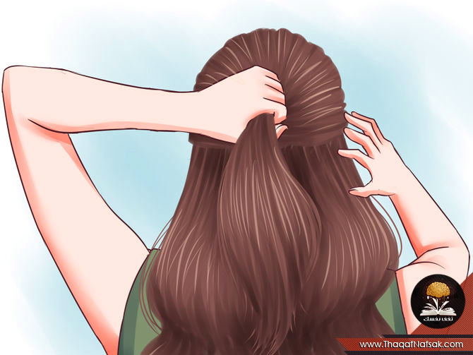 ربط الشعر بالتوكه و يمكنك إختيار أي شكل يتناسب معك.