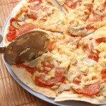 8- وبذلك تكون قد قمت بإعداد بيتزا الببروني الشهية قم بتقطيعها وتقديمها للطعام ساخنة واستمتع بمذاقها أنت وأسرتك ~ ~ وبالهنــاء والشفــاء ~ ~