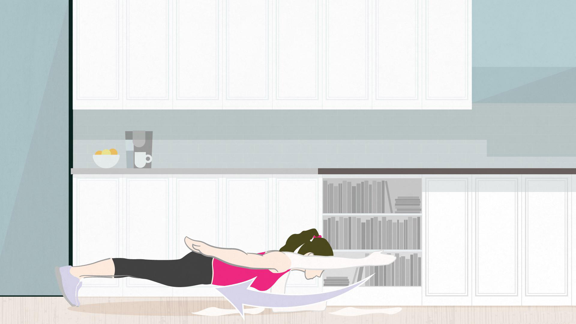 - تمرين أخر خاص بالذراعين أداء التمرين في المطبخ لن يختلف كثيراً عند أدائه في الصالة الرياضية. أدر ظهرك لطاولة المطبخ قم بتمديد الساقين و الذراعين و يدك تمسك بحافة الطاولة .كلما بعدت الساقين عن الطاولة كلما كان التمرين أصعب. لا تقم بثني الساقين ولكن شد الجسم كلهحتي الذراعين.