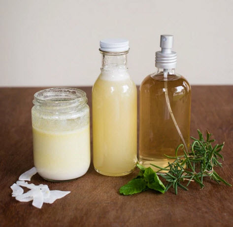 في الماء المغلي اضع كل المكونات، واتركها تغلي لمدة قصيرة، ثم انقلها في زجاجة الرذاذ . قم برش هذا الأسبراي بعد غسل الشعر بالشامبو . قم بالرش علي فروة الرأس و الشعر ايضاً و اتركه لمدة 5 دقائق قبل شطف الشعر مرة ثانية ولكن بماء بارد