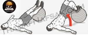 البدء بالإستلقاء بظهرك علي الأرض وفرد الساقين علي الكرة الطبية مع الحفاظ علي الذراعين بجانبك وراحة يديك في مواجهة الأرض، والأن العمل علي رفع الوركين بعيداً عن الأرض بحيث يشكل الجسم خط مستقيم من الكتفين إلي الكعبين . بعد الثبات علي هذه الوضعية لمدة 10 ثواني يتم ثني الركبتين ثم النزول بالركبتين إلي الأرض بالتدريج .يمكك تكرار ذلك 5 مرات .