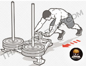 يعتمد هذا التمرين علي ألة المتصيد المتواجدة أمامك بالصورة ( وهي أداة تماثل رفع الدمبل )  وذلك من خلال الإستيلاء علي مقابض زلاجات المتصيد ودفعها مسافة أمامك  ثم عكس خطوة إلي الوراء بكل ساق بمسافة تصل إلي 30 متر .