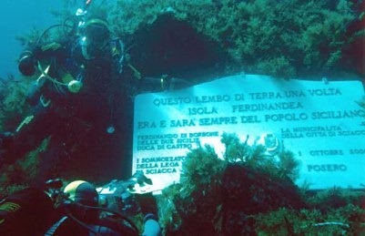 ذات مرة في مياه ليست بعيدة قبالة سواحل صقلية كان هناك جزيرة تسمى فردنانديا. تقع حيث مضيق البحر بين صقلية و تونس و هو موقع استراتيجي لأي قوة بحرية ترغب السيطرة على الحركة في البحر الأبيض المتوسط. وكان هناك صراع قوي و حرب سيادة وسيطرة بين اربع دول قوية قد بدأت بعد وقت قليل من اكتشاف الجزيرة ولكنها لم تدم طويلا لان بعد اقل من 6 شهور كانت الجزيرة قد غرقت بالبحر مرة أخرى. والان بعد ما يقارب المئة عام من المنتظر ان تبدأ الجزيرة بالارتفاع مرة أخرى نحو السطح.