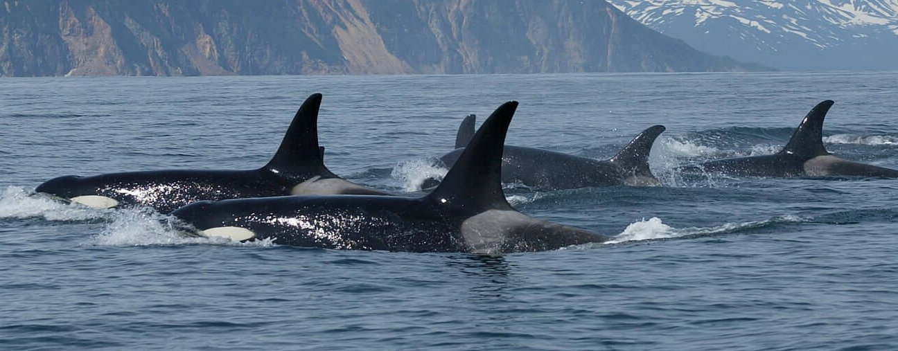 بين ابريل و مايو تبدأ الحيتان الرمادية في الهجرة من مياهها في المكسيك الى مياه التغذية بالقرب من الاسكا. كما انها تمر بالقرب من مونتيري مع صغارها. فمن الشائع أن نرى زيادة اعداد حيتان الاوركا. وتقدر التقديرات الى ما يصل إلى 33 أوركاس في الخليج في أبريل لافتراس صغار الحيتان.