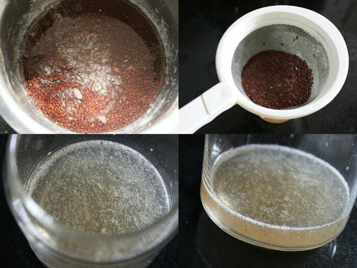7. قم بتصفية الجل من بذور الكتان بعد أن يبرد