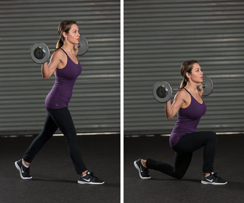 تبدأ بالوقوف مع فتح القدمين بعرض الوركين بعيدا والقبض علي بار الأوزان بين يديك بشكل مائل أسفل الكتفين، وإتخاذ خطوة إلي الوراء في موقف الإندفاع والحفاظ علي الكعب الخلفي من الأرض وثني الركبتين مع خفض الركبة المفتوحة نحو الأرض وفي نفس الوقت الحفاظ علي مواءمة الوضعية المناسبة لك وتكرار نفس الخطوات مع الجانب الأخر .