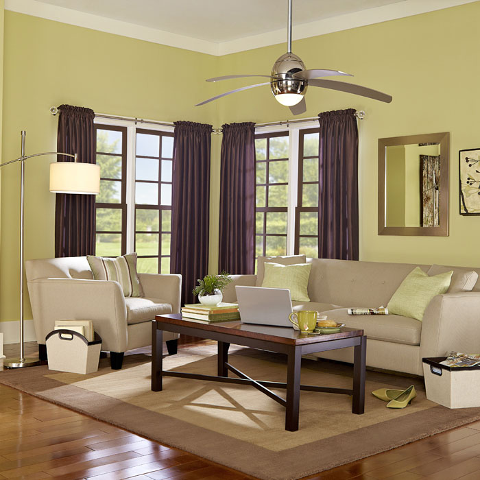 يمكنك إلقاء نظرة حولك والتحقق من المنطقة المحيطة لتحديد اللون السائد بكمية أكبر في غرفة الصالون . وإستخدام هذا اللون كأساس عند إتخاذ قرار بشأن ثريا غرف الصالون . علي سبيل المثال إذا كان اللون الأرجواني هو اللون السائد في كراسي غرفة الصالون فإن الثريا الأرجواني حل مثالي .
