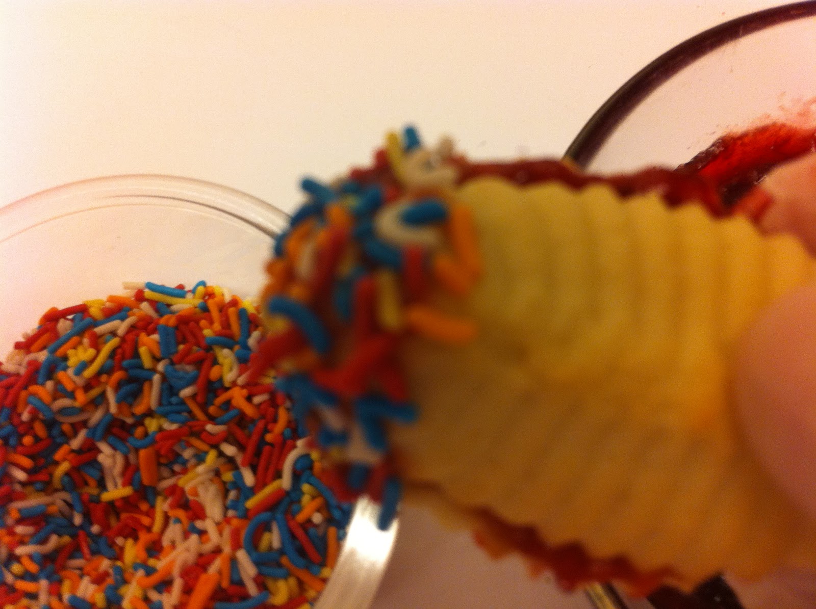تغطية الجزء العلوي بالمربي كما هو واضح في الصورة ، ثم تغطيته بالفارميبلسي أو جوز الهند .